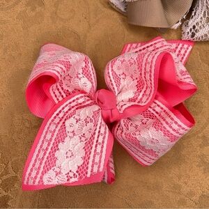 SET OF 3 PINK CHEER BOWS LACE COLORFUL LARGE HAIR ACCESSORIES