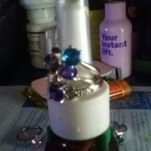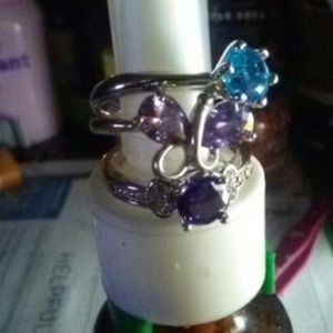 All silver no #925 fun jewelry! The middle ring is a butterfly.