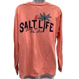 1. Salt Life- Peach, print front, Back and left sleeve. Armpit to armpit 21”, Length 24”