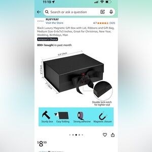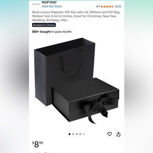 These are brand new! Original price per box is $8.99. Get all 5 for one low price! Elegant MAGNETIC black gift boxes with bags are perfect for any occasion. The sleek design adds a touch of sophistication to your gifts.