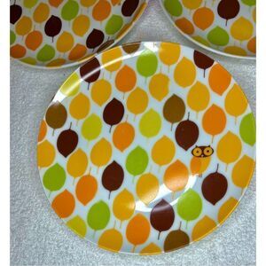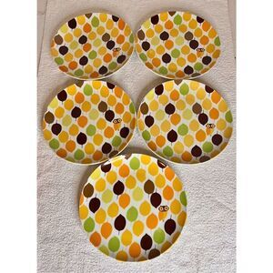SET OF 5 RACHAEL RAY LITTLE HOOT SALAD PLATES 8" OWL LEAF PLATES