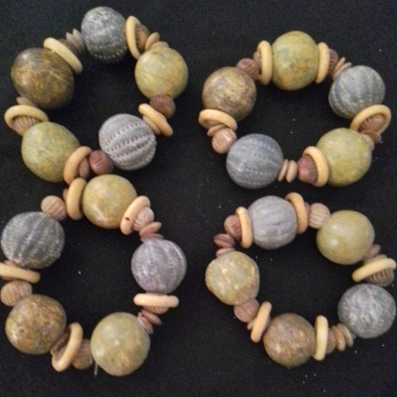 Set of 4 napkin rings. Blue, green, and tan. EUC. Great for Spring and Summer!