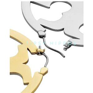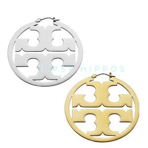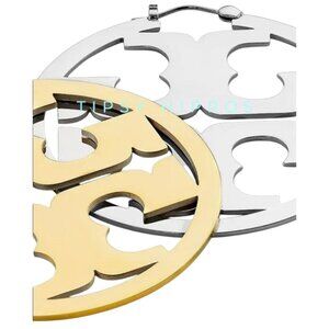 SET OF TWO!!! Tory Burch Miller Logo Cutout Gold & SILVER Tone Hoop Earrings