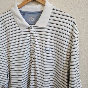 SET OF TWO Under Armour Loose White Stripe Collared Polo Short Sleeve Shirt Golf Athletic 2XL
