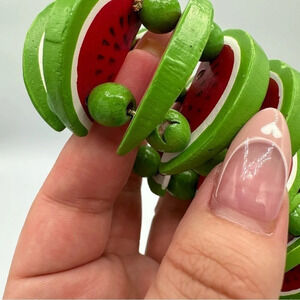 SET Of Four Wooden Watermelon Napkin Rings.