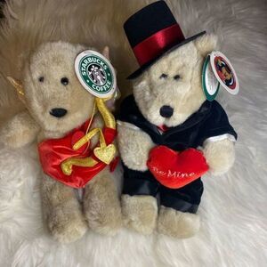 SET‎ Of Two Starbucks Bearista Bear Collection-Cupid Valentines Bear