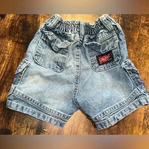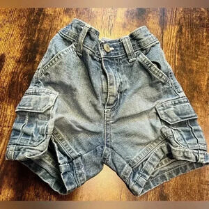 1- Old Navy: zip up denim cargo shorts. Size: 6-12M