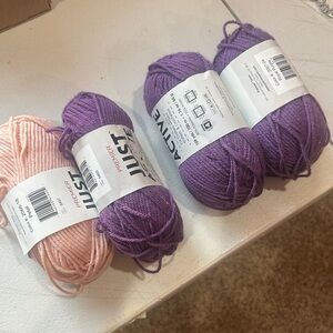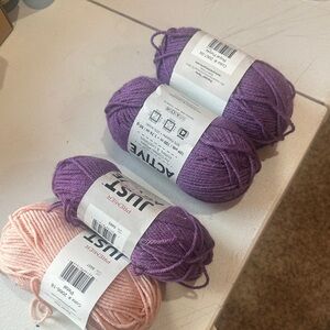 Set of Premier Just Active yarn in peach and violet. Ideal for crafting projects.