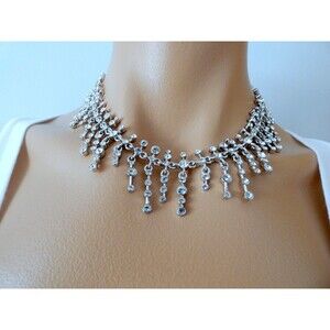 SET VTG ST. JOHN Silver Swarovski Crystal Choker Necklace Earrings 2000 Bridal