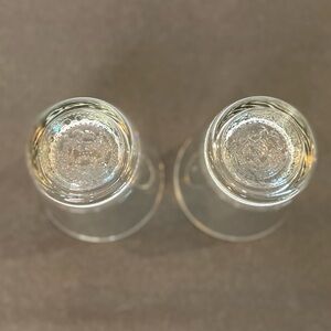 Perfect glasses to add to your bar to serve friends a whiskey on the rocks. These glasses have the words Crown Royal embossed on the glass as well as the logo embossed on the bottom of the glass. Selling 2 glasses total. Measures 3.5” tall and 3.25” wide.