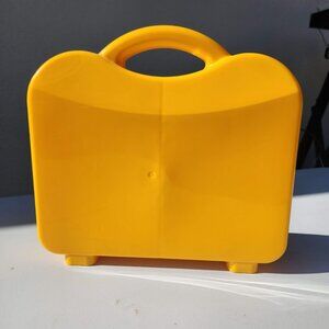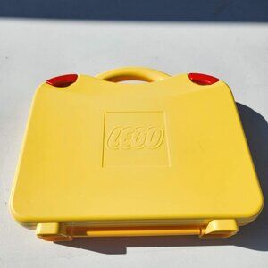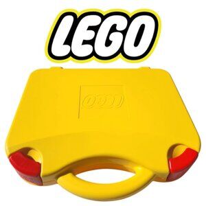 SET of 2 LEGO Yellow Plastic Carrying Carry Case Storage Box w Handle Dividers O