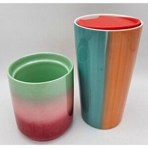Holidays Starbucks Ombre Red Pink Green Ceramic Tumbler Holiday 2020 8oz Mug.