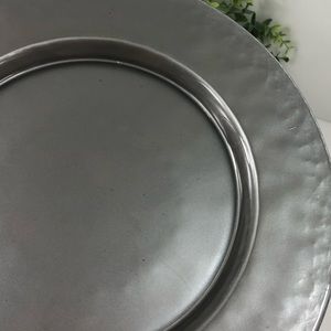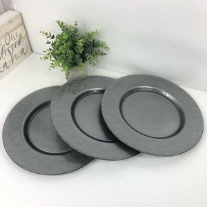 SET of 3 Pcs Pottery Barn 13”Shimmering Silver Pewter/Gray Tones Hammered Heavy Glass Chargers