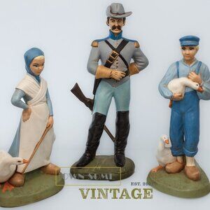 This set of 3 vintage ceramic figurines is a charming representation of Dutch Colonial life, measuring 7” each. Hand-painted and beautifully detailed, these figurines add a unique, historical touch to any decor.