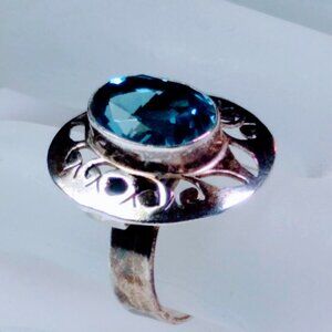 -- blue faceted stone dome ring -