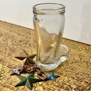 Vintage Western Cowboy Cowgirl Boot 1.5oz Shot Glasses Set of 6 . Excellent condition. No chips, cracks or damage. They are a thicker heavier weight glass. Measure about 3” inches in height & hold a little over 1.5 ounces . Adorable solid shot glasses for your favorite country lovin’ party hoedown friends ! You will receive all 6 shown in pictures. The bottle of Jim Beam Whiskey not included 🤠