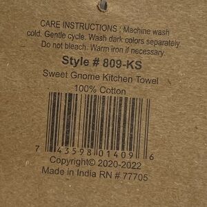 Hand towel 1) “Gnome Sweet Gnome,” white with two gnomes and a tree. Has snow flakes on the front.