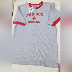 Classic Boston tee with red accents. Soft and comfortable. NWT very small pencil tip spot on left sleeve, very small spot towards back hem as noted in pictures. Boys size 14/16 Inventory item A-11