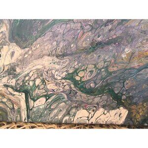 SET/2 Coastal Waves Flow Fluid Art, Hand Painted, Swipe and Spin Abstract, EUC