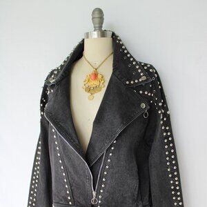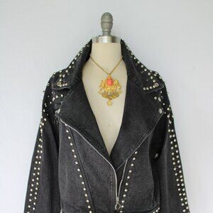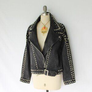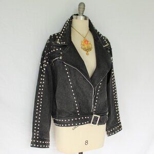 SETA APARREL Studded embellished black Denim Motorcycle moto biker Jacket bomber