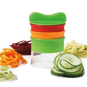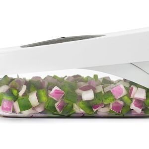 Set includes 1 USED ONCE OXO Good Grips Vegetable and Onion Chopper with Easy Pour Opening White and 1 NEW OXO Good Grips 3-Blade Hand-Held Spiralizer, Green, Red, & Orange