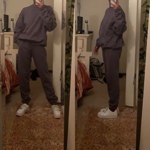 SETactive complete Set Sweat in Pebble! A beautiful grey with a purple tint! In good condition and no flaws! Both in a size Small. No longer sold and will not be restocked on set active site! NO TRADES. TRUE COLOR IN MODEL PHOTO Selling for less D E P O P FOR $120 due to fees on here! RETAILS FOR $195 ALL TOGETHER! THIS IS A STEAL