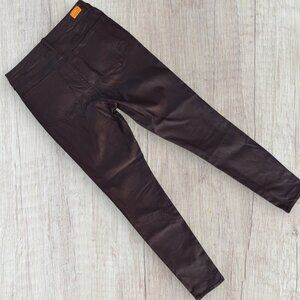 Brown Expresso Coated Faux Leather High Rise Skinny Stretch Pants