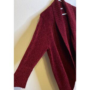 SEVEN 7 Burgundy Sweater Chenille Open Front Cascade Flowing Cardigan XL Soft