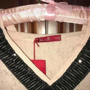 SEVEN BLUSH AND BLACK SEQUENCE PULLOVER PETITE M PULLOVER