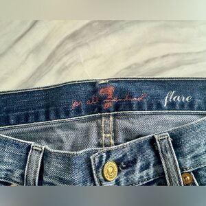 SEVEN FOR ALL MANKIND Super Rare Gold Blue Studded Distressed Flare Jeans 28