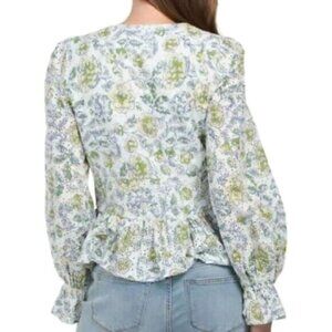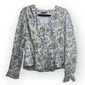 Seven for All Mankind blue floral print Peplum Blouse size Medium