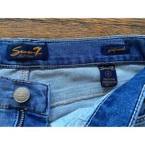 Seven 7 'Girlfriend' Distressed Cropped Jeans in size 4. These relaxed fit jeans feature a 5-pocket design, logo stamped rivets, logo embossed button, leather patch, embroidered pockets and a zip fly closure. Perfect for the spring and summer months with sandals or wedges.