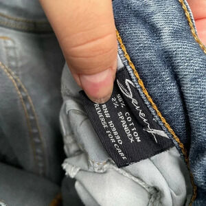 Pre owned. These have some wear in between legs (pictured) no puckering. Just a little fading and some friction of fabric it seems. WOMENS size 14.