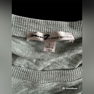 SEVEN7 SEVEN 7 Gray Olive Green Ruffle Shoulder Sleeve Elbow Length Dressy Top L