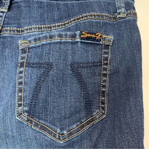 SEVEN7 Tower Straight Crop Jean in a dark wash. Seven emblem is stitched on back pockets. Zipper fly with button. Size 4