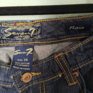 SEVEN7 Womens Jeans Size 26 Dark Denim Wash Flare Leg Cotton Spandex ALTERED
