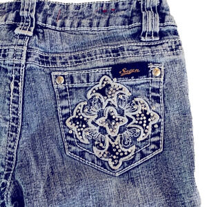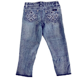 Seven7 capri pants with embroidery and sequins on back pockets. Size 10. Preowned in good condition. No rips or stains. Bundle and save!