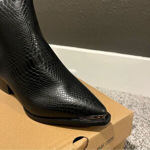 The Madison Python is a vegan leather pointed bootie with metal accents and a TPR outsole. Add some flare to your outfit with the subtle and classy python print.
