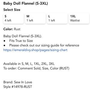 🆕SEW IN LOVE BABYDOLL FLANNEL🆕