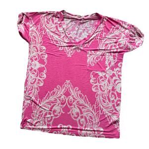 SEW IN LOVE ~Pink Floral~S/SLV~Lightweight~Knit Tunic Top/Tee~SZ~M~EZ Care