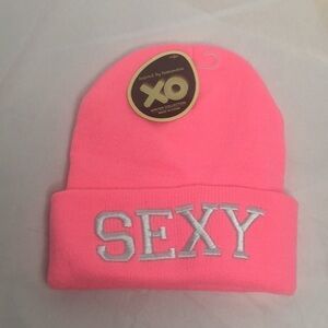 Bubble gum pink Bernie hat with “ SEXY” Embroidered in white on front