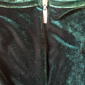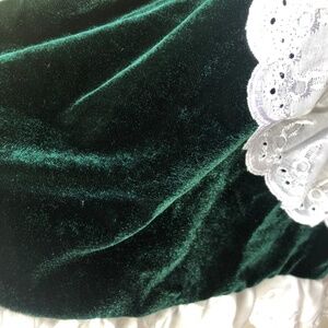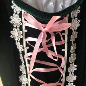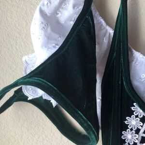 SEXY DIRNDL DRESS, OCTOBER FEST, SEXY COSTUME, NEW WITHOUT TAGS. Four piece set includes lace bra top, dress, apron, and match thong panty. Color is a deep emerald green and material is soft velvet.