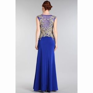 SEXY Gold Embroidery Royal Blue Dress 1556