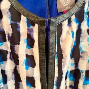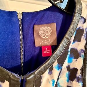 SEXY LINED DRESS W/LEATHER TRIM NECKLINE, POCKETS- SIZE 6 FREE SHIPPING!