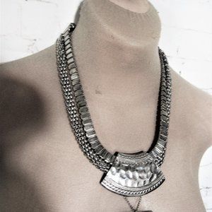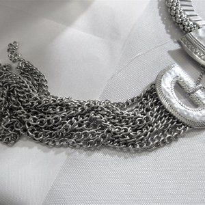 SEXY SILVER TONE METAL NECKLACE EXCEL. COND. VINTAGE AMERICAN