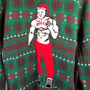 SEXY Santa Christmas Sweater Red & Green Applique Size XL Long Sleeve CUTE