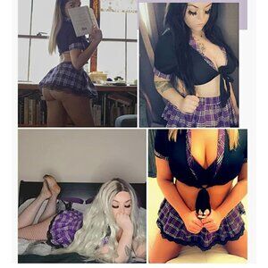 NWT Sexy Purple Schoolgirl Lingerie Roleplay Set Student Bondage Halloween Costume Crop NWT