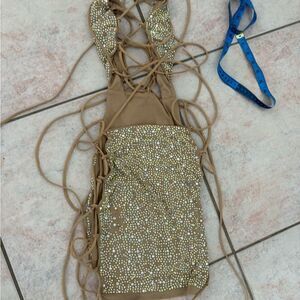 SEXY shiny rhinestone sparkle cutot lace halter top dress stoned beaded Banjul