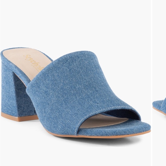 SEYCHELLES ADAPT BLUE DENIM SLIDE SANDAL STACKED 3” HEEL 8.5 NEW