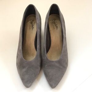 SEYCHELLES Chunky Heel Suede Pointed Toe Heels Gray Women’s Size 9